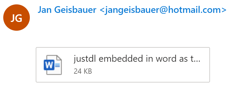 I then re-checked the behavior and did the same (renaming, zipping and embedding in Word) with the 1st version of the custom app that just downloads a file – the attachments were delivered.