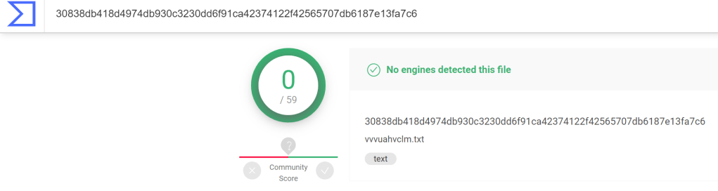 So, probably the .js file downloaded this .txt file. Luckily I could download the .txt file and I then directly uploaded it to VirusTotal: