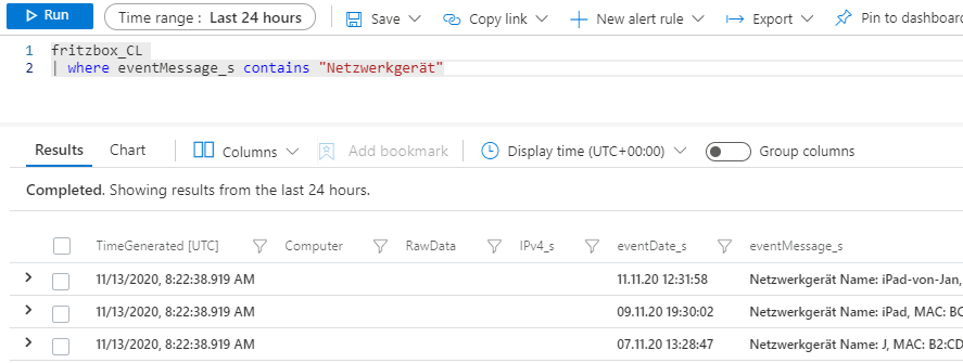 If you schedule the script on a small ‘server’ in your home net, you always get the latest events and of course, you can even create analytic rules from your hunting queries and get alerted by a playbook to not miss that your daughter has turned on her iPad 😉