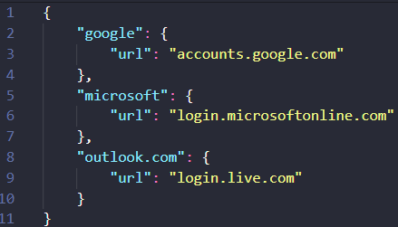 With that filter, we make sure that only hostnames that match our JSON config are treated as trusted (https://developer.chrome.com/docs/extensions/reference/events/#type-UrlFilter). If we would use for example “urlEquals”, something like this would also be valid: phishingsite.com/login.microsoftonline.com/bla