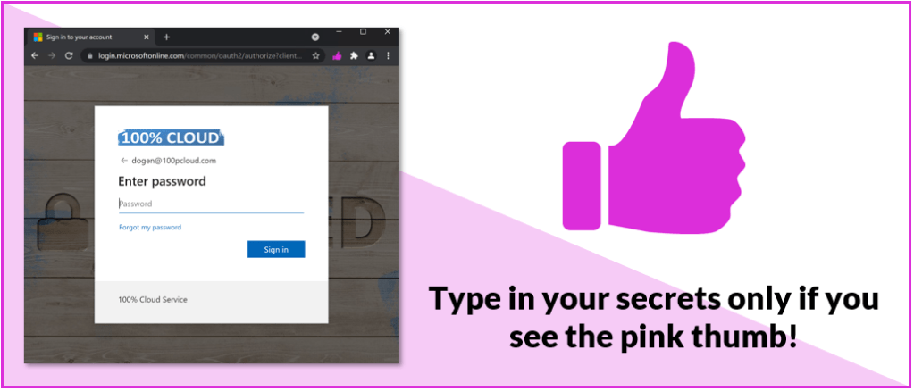 To help users (and ourselves) to make better decisions, on which sites to type their passwords and on which not, I have created a very simple chrome extension (that also works on edge): PINKTHUMB – let’s call it a showcase.