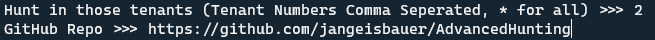 Again, with option 3, you are asked for the tenant you would like to hunt in. However, now we introduce multi-tenant hunting. You can specify either one, multiple (comma-separated) or all (*) tenants.