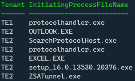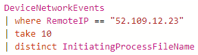 Let’s for example say, you would like to know which processes are talking to a certain IP address in some of your configured tenants. You would use a KQL query like this: