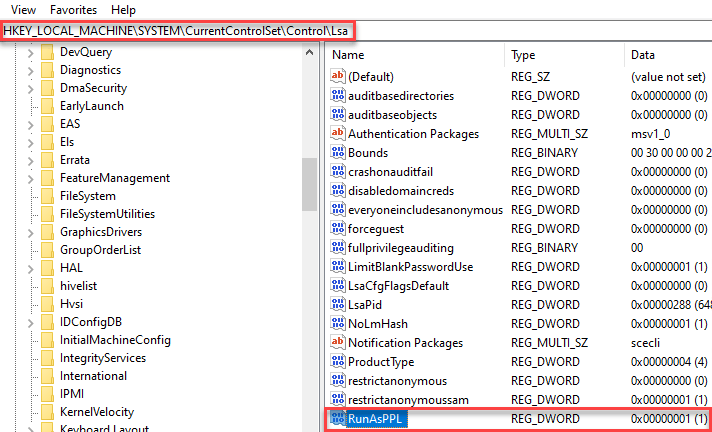 The first obvious protection against the access of the lsass’ memory space is to harden the access to this memory space by running lsass as a protected process.