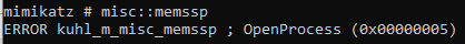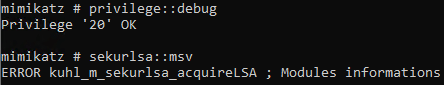 This then leads to an “Access Denied” (0x0000005) for mimikatz when trying to access lsass’ memory …