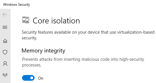 Our next iron in the fire is called ‘virtualization-based security (VBS)’ including a configuration called ‘Hypervisor enforced Code Integrity (HVCI), also called ‘Memory integrity’, which is part of ‘Core isolation‘ – easy, isn’t it?