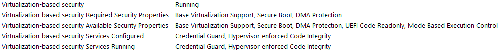 VBS brings in an additional virtualized kernel that is running on a new trust level. While the rest of the system, including the ‘normal’ kernel is on Virtual Trust Level 0 (VTL 0), the new secure kernel is on VTL 1 and is hiding memory addresses from the normal kernel. As we have read above about how mimikatz is gaining access to the credentials in memory, these virtualization technologies are important to be protected against those kinds of attacks.