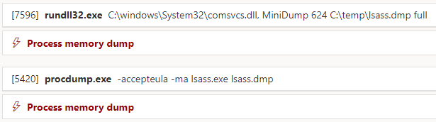 With that, we can see e.g. ‘simple’ process dumps from lsass, in that case from procdump: