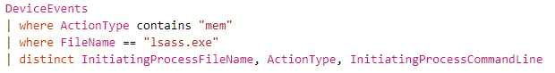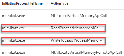 With the following query, we can bring some light into what mimikatz and other tools actions look like in the defender telemetry: