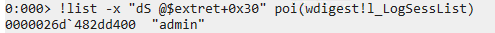 Adam shows that this pattern search in memory of course can also be done via WinDbg for example: