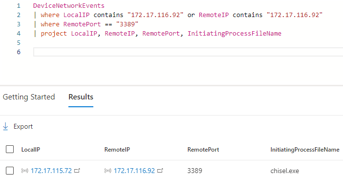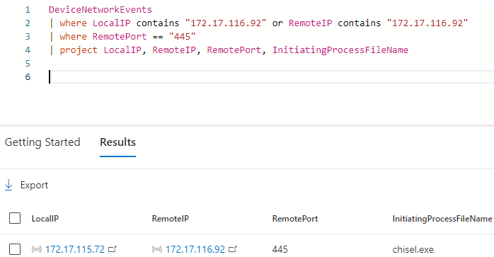 The following hunting query is summarizing processes that have multiple network connections open with at least one in the local and one in a public network. With that we can hunt for occurrences in which a tool like the chisel client would have established a connection to a remote SOCKS proxy and at the same time would route the traffic from that tunnel to another internal target: