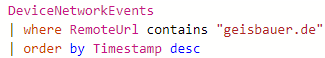 This get-request will then be ‘recorded’ by Defender for Endpoint enrolled systems by default. That is why you could then hunt for occurrences like this in MDE: